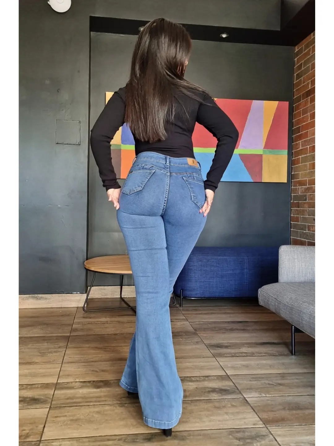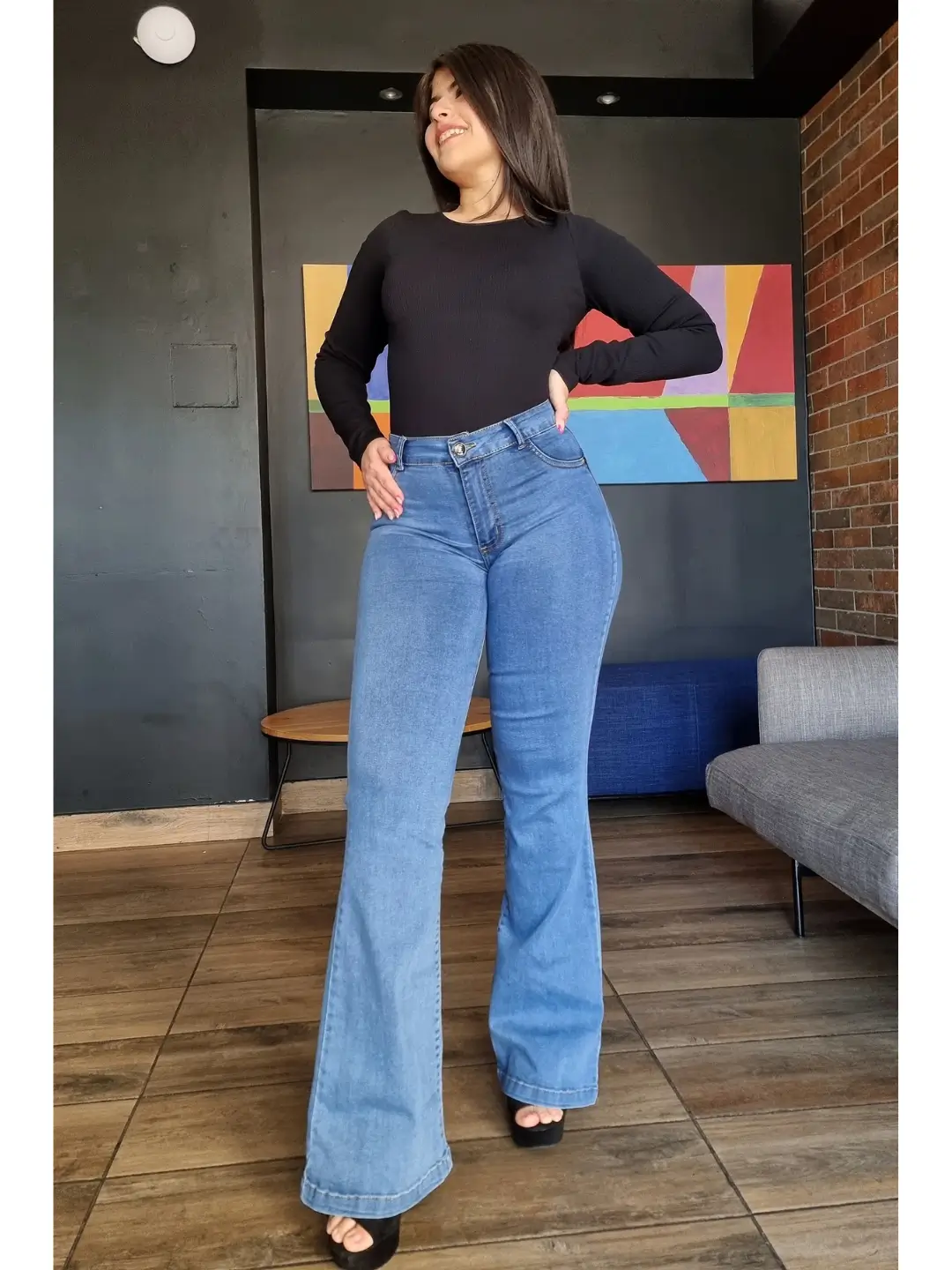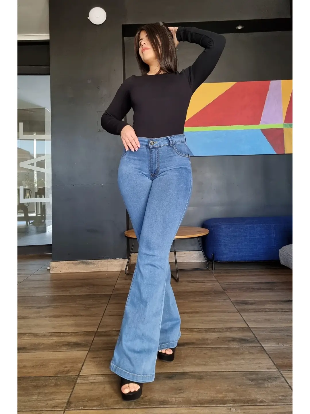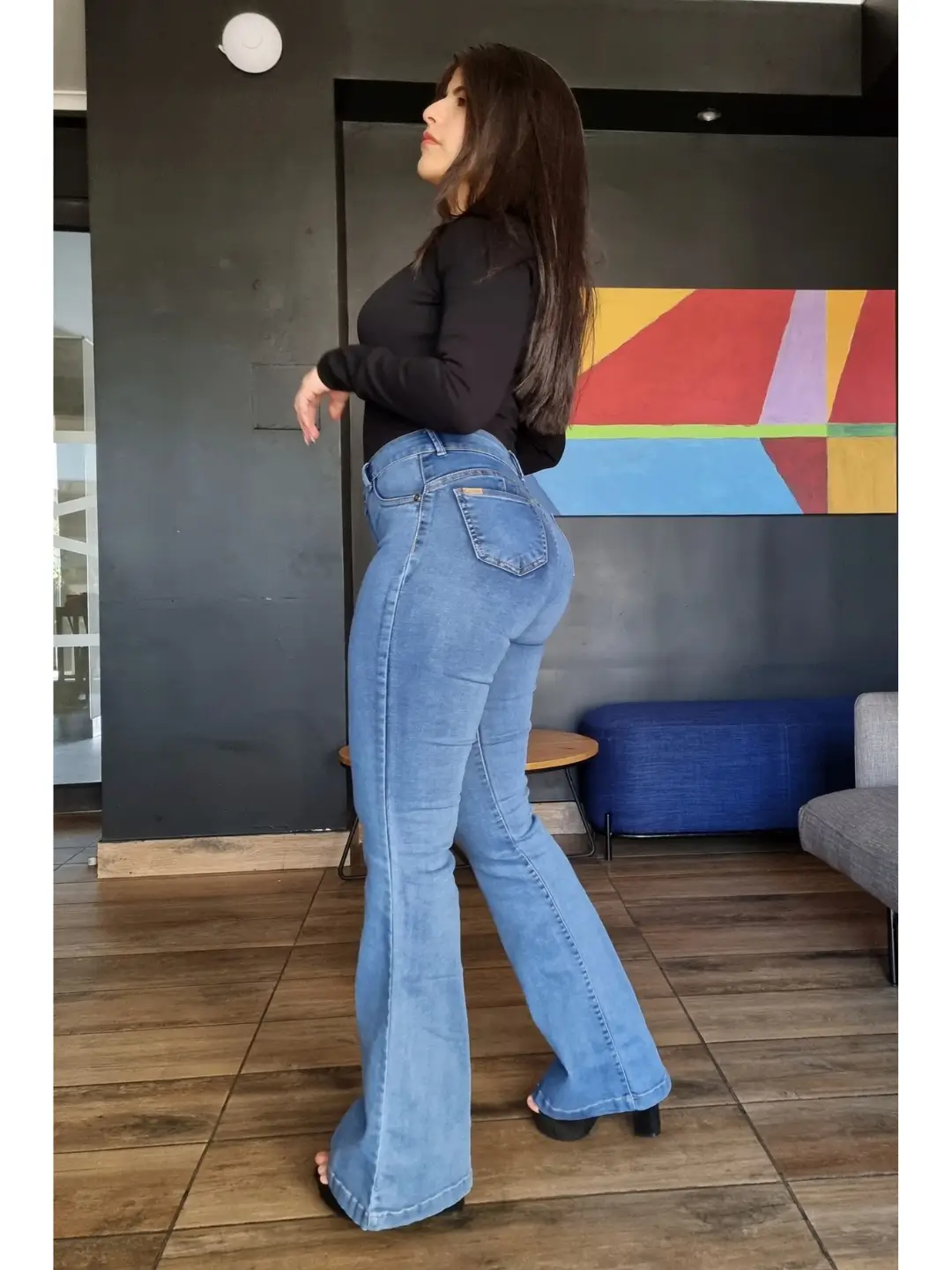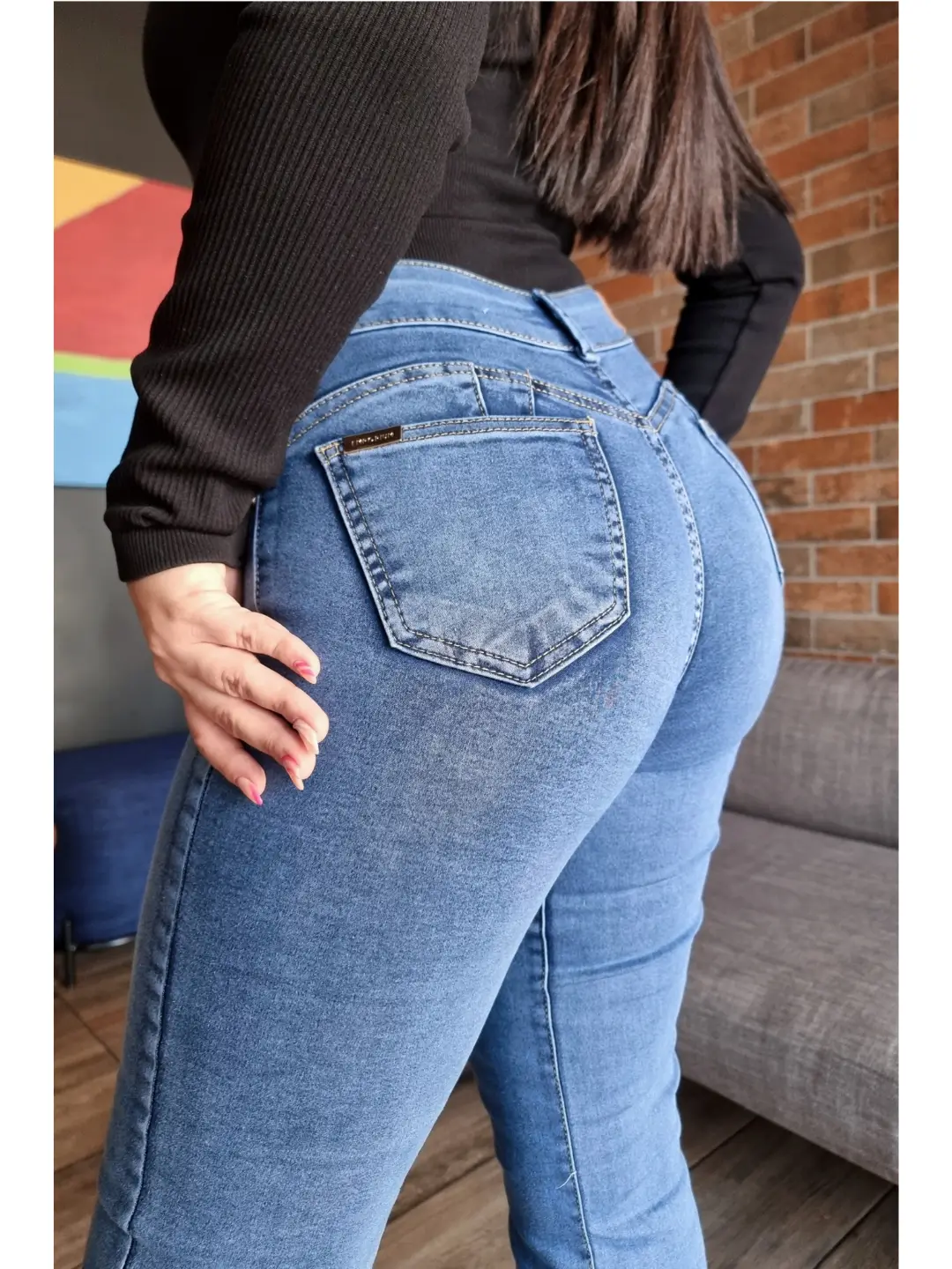 MODELO ESTÁ USANDO TALLA 38, Es full elasticado, el jeans celeste sensación se ajusta como un guante a tu silueta sacando lo mejor de ti